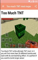 Too Much Tnt Mod Mcpe For Android Apk Download from image.winudf.com May 24, 2017 · too much tnt mod 1.8/1.7.10 adds new types of tnts, gunpowder and uranium ore to the minecraft (all tnt's are in redstone creative tab). You can cause giant explosions, shoot down meteors, build houses and more. The upgrades give players big bad bombs such as nukes, meteortnt, and the miningflattnt. The arrow tnt shoots out hundreds of arrows when it goes off. Too much tnt adds a ton of new blocks of tnt and throwable dynamite. These aren't your average tnt blocks, though. Feb 08, 2021 · the basic upgrades of too much tnt mod are tnt x 5, tnt x 20, tnt x 100 and tntx 500. These are extreme and dangerous.